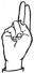 На ћирилици написано МИРЈАНА УЛЕМЕК састоји се из 13 слова [?]. Исписано ћириличном једноручном азбуком за глувонеме: